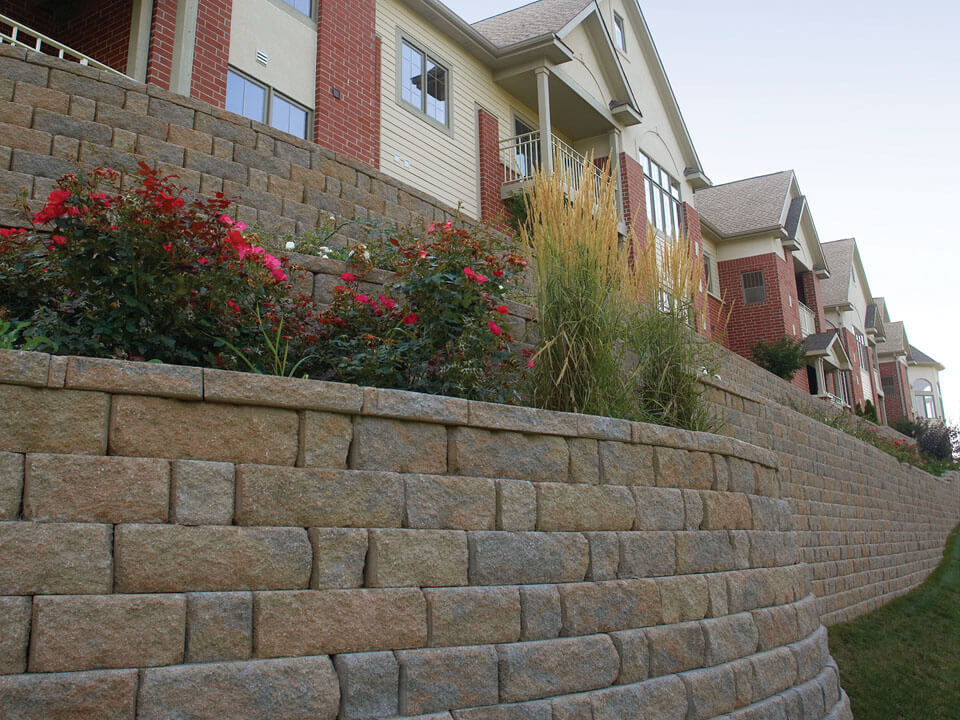 The Highland Stone® retaining wall system combines earthen tones, rich textures, varied contours and all the advantages of the rear-lip locator, making it a reliable and easy-to-install