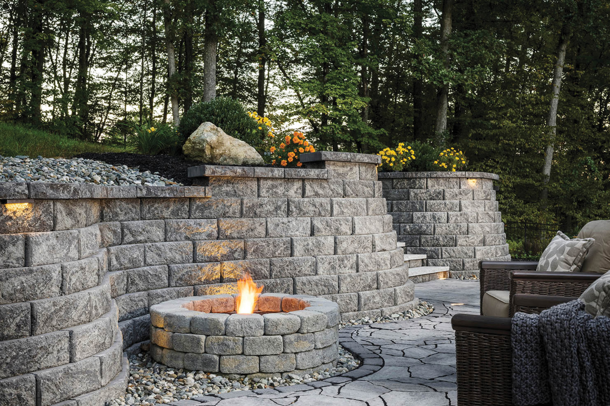 Outdoor areas of any size or shape can be transformed with Anchor™ retaining wall products. The shapes and textures of our wall systems blend with the environment to create attractive and functional landscape wall features.