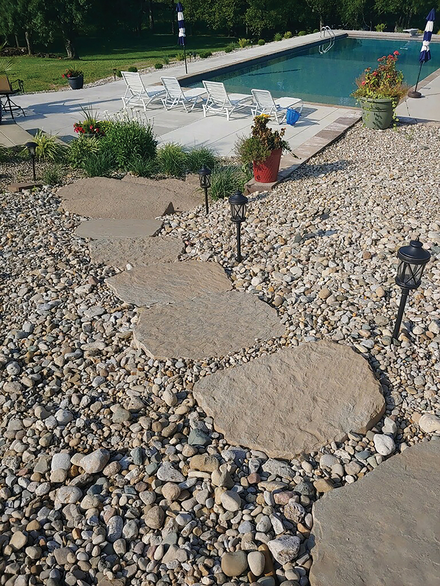 Do you need a stylish and visually interesting pathway to go from your pool to your firepit or your house? Maybe you are looking for a better way to get from point A to point B within your landscaping. The Superior Steppers are perfect for these applications and are available in Limestone or Ridgestone colors at LEE Building Products™. There are also 8 different shapes at roughly 27″ x 21″ wide with a consistent 51MM (2″) rise. Step, skip or hop through your outdoor spaces with Superior Steppers!